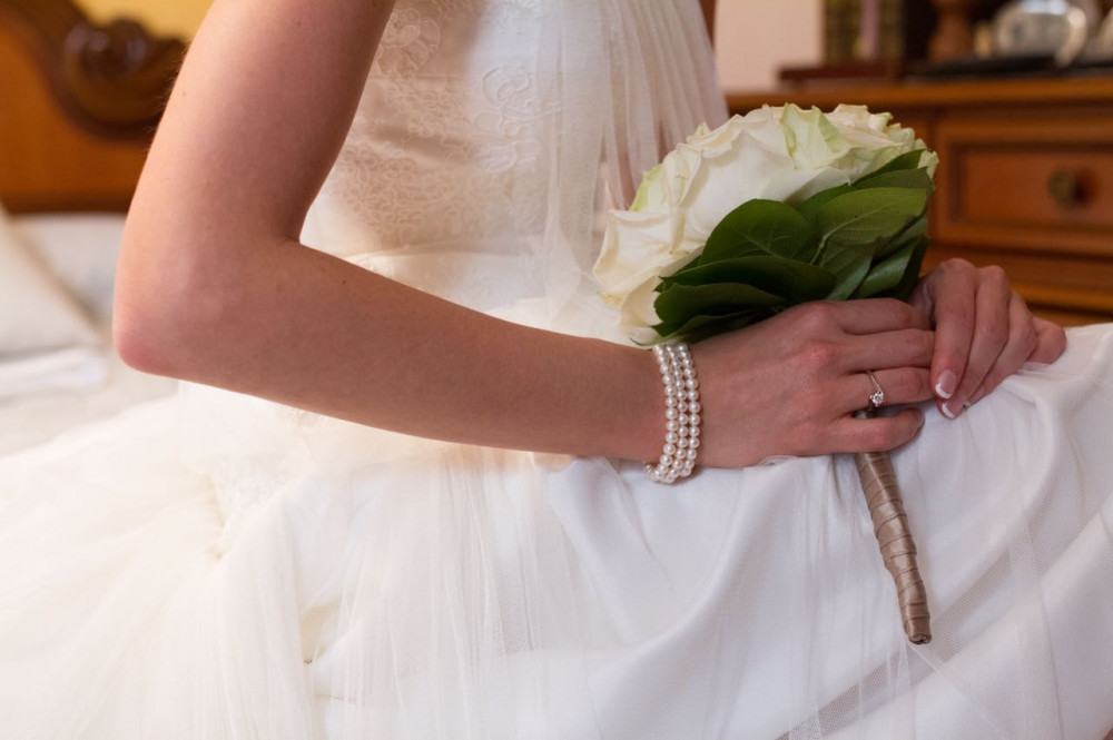 Il discorso fatto per la collana vale anche il bracciale, da indossare sul polso destro solo se avrai le braccia nude. La scelta può ricadere su un classico bracciale di perle (come nella prima foto), oppure su qualcosa di più estroso, che richiami un elemento decorativo dell’abito. Nella seconda foto ti mostro un bracciale importante, interamente tempestato di cristalli Swarovski, che ho realizzato per una sposa che mi ha richiesto un accessorio con la stessa decorazione della cintura del suo abito. Detto, fatto!