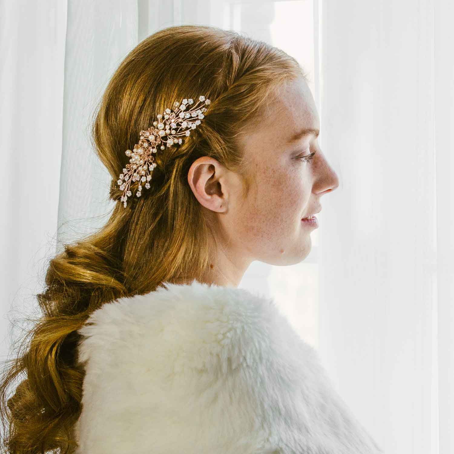 Una volta decisa l’acconciatura insieme al tuo parrucchiere di fiducia, puoi considerare l’idea di mettere un accessorio per capelli. Ce ne sono di diverse tipologie, che si adattano perfettamente a ogni genere di acconciatura, dallo chignon più classico al semiraccolto fluente: forcine e pettini decorati, tralci di varie lunghezze. Per chi ha i capelli corti, meglio puntare su cerchietti o mollette. Naturalmente, la decorazione deve adattarsi perfettamente all’abito, riprendendone tema e colore.