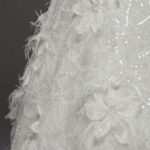 Forse la vera grande novità 2019 è proprio questa: enormi fiori 3D, frange lunghissime, rouches e piumette. Con questo tipo di applicazioni, i volumi dell’abito vengono ridisegnati, creando uno strepitoso effetto movimento. Di seguito ti mostro gli abiti che mi hanno colpito di più.