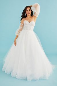 Una tendenza che si sta affermando sempre più è quella delle maniche scivolate, meglio se a sbuffo o a palloncino. Si trovano quasi sempre su abiti a sirena o ad A, e aggiungono un indiscutibile tocco romantico all’intero look. Diventano ancora più interessanti quando sono staccabili, perché permettono, ad esempio, di nascondere le braccia durante la cerimonia religiosa, e di scoprirle durante il ricevimento.