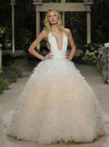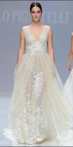 La collezione Petals di Antonio Riva è romantica con ricami colorati barocchi e vistosi. Anche Pronovias per il 2019 propone molti abiti colorati: uno fra tutti, questo meraviglioso abito principessa con gonna di tulle rosa pesca in degradé.