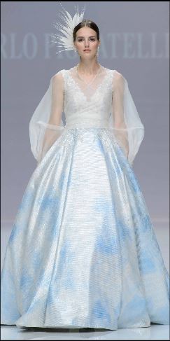 Persino Carlo Pignatelli, notoriamente molto sobrio e tradizionale per quanto riguarda la linea sposa, osa qualche tono di colore! Con delle proposte fra il grigio perla e il cipria, l’innata eleganza della sua linea sposa rimane perfettamente riconoscibile.