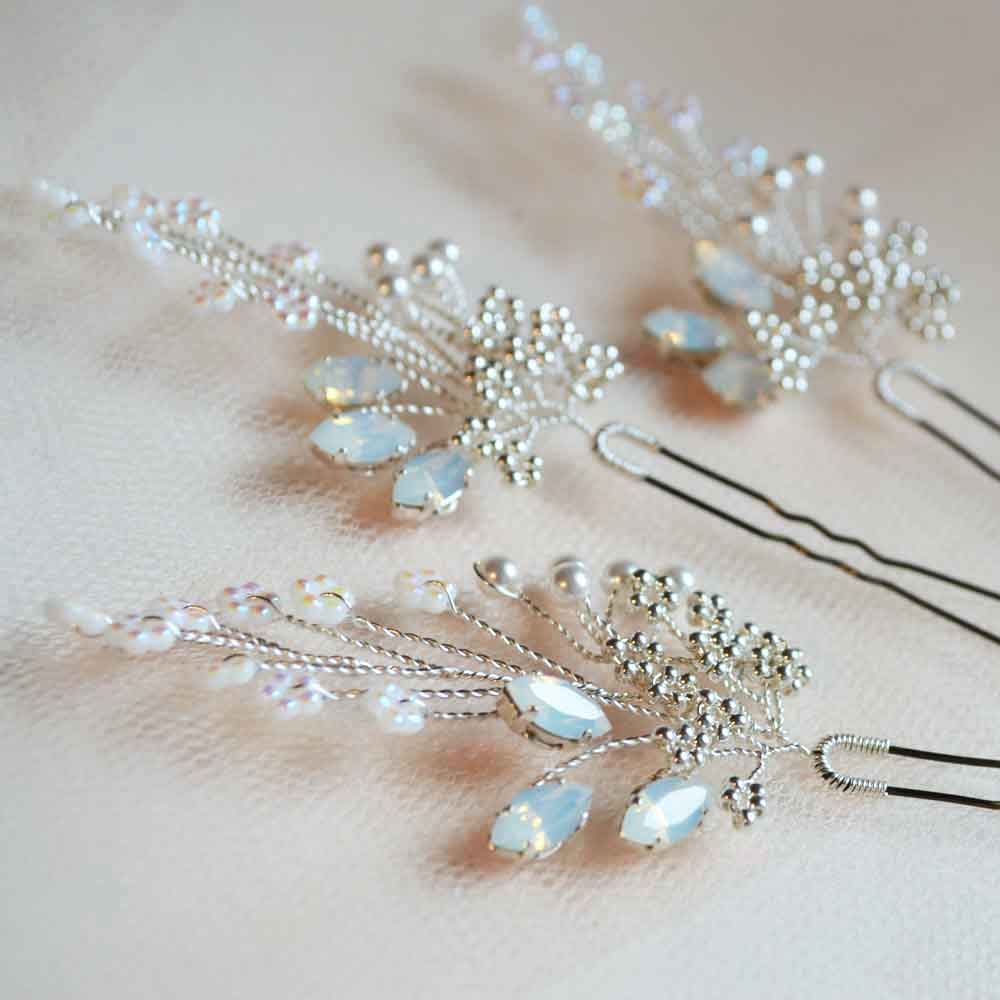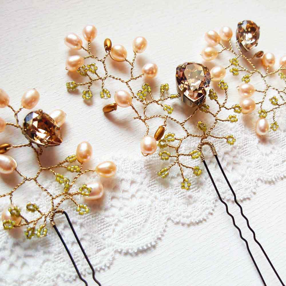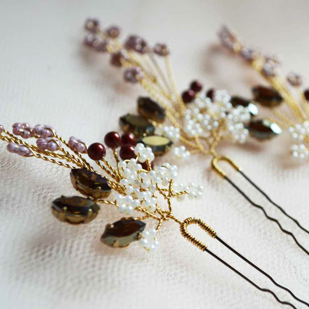 L’accessorio per capelli più versatile e delicato è sicuramente la forcina decorata. Se scegli come pettinatura uno chignon o un semiraccolto, anche una sola piccola forcina renderà l’acconciatura preziosa e particolare. La decorazione e il colore devono adattarsi all’abito: forcine bianche per l’abito bianco, colorate per l’abito colorato. Ma anche le forcine colorate possono stare bene su un abito bianco, se ha molto pizzo e uno stile boho chic. Provare per credere!