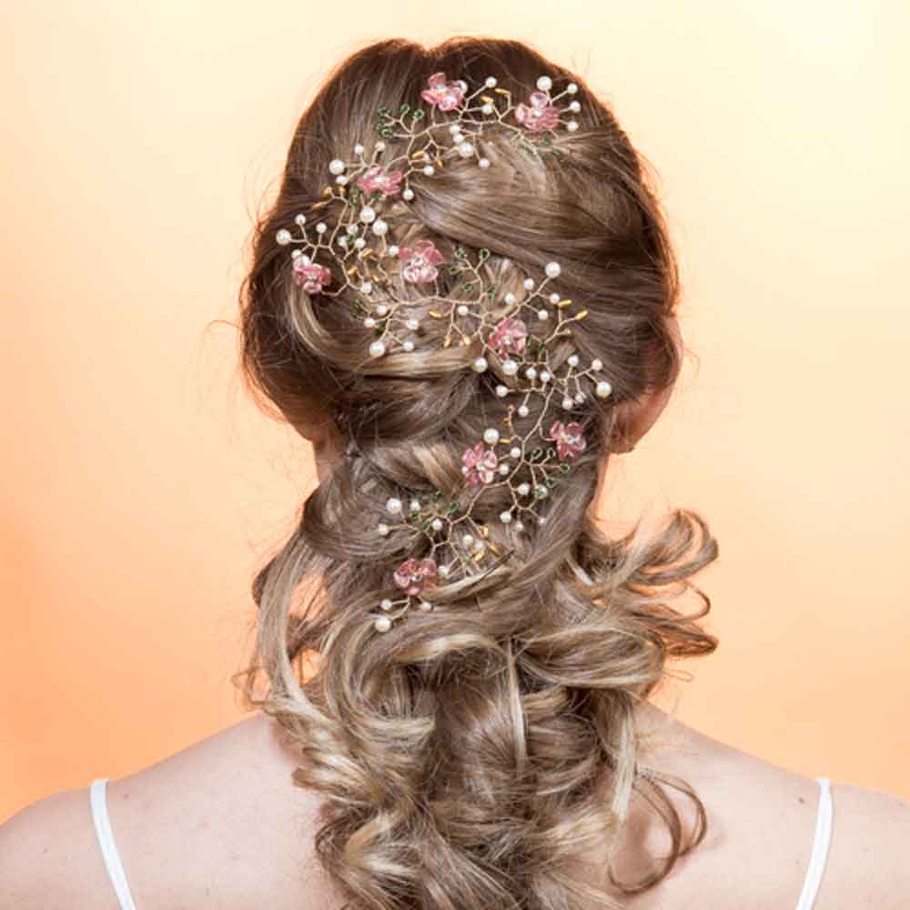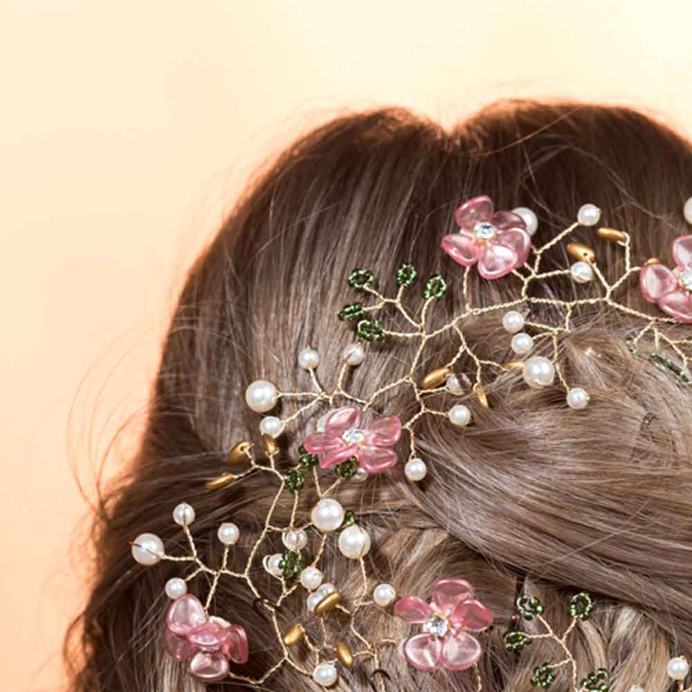 The small eyelets at the ends of the composition allow you to fix the accessory with practical hairdressing hairpins (not included), making it versatile and suitable for many hairstyles.
