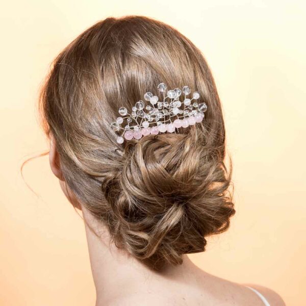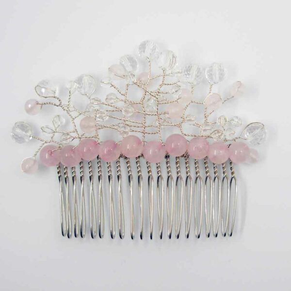 The classic hair comb decorated with hyaline quartz and rose quartz.