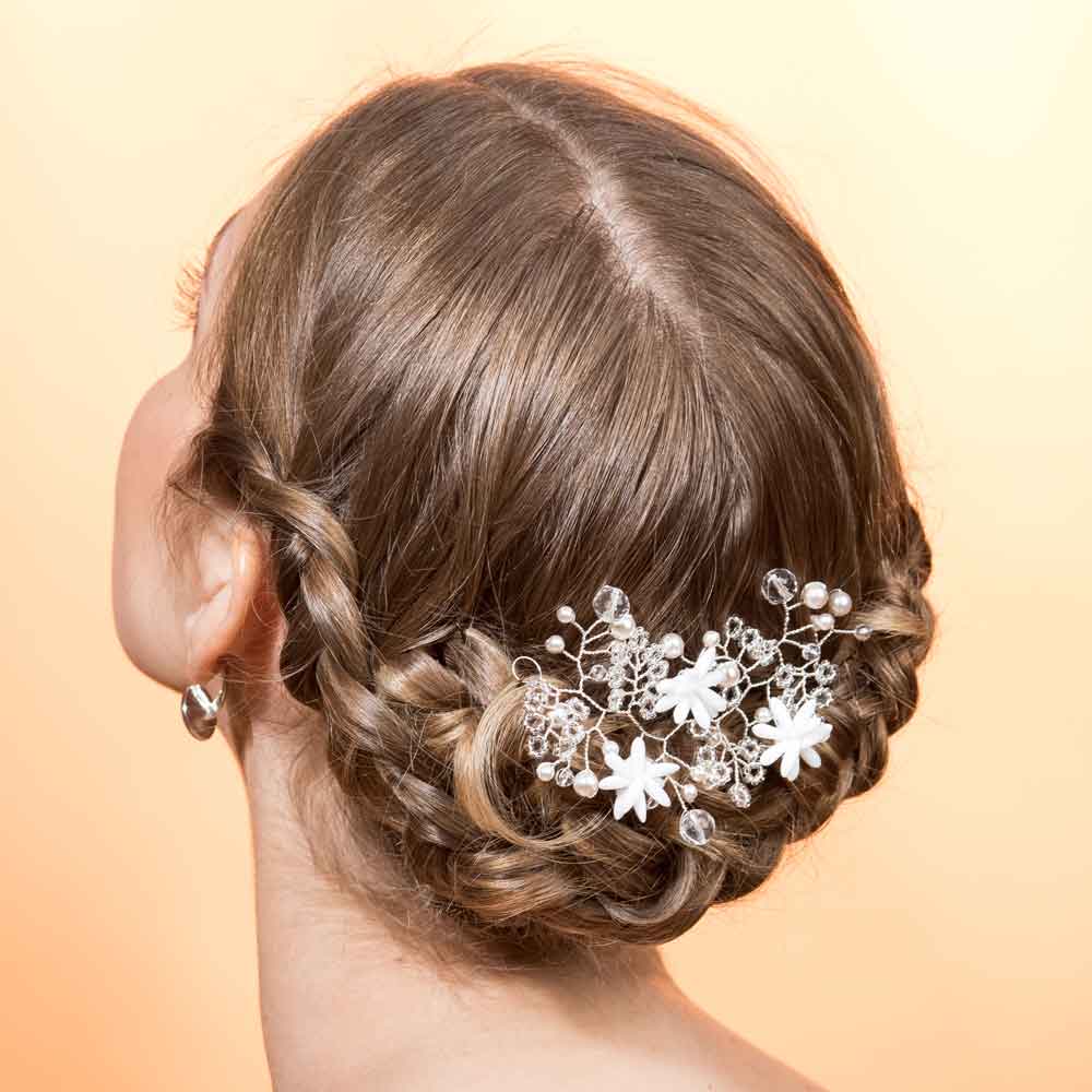 The small eyelets at the ends of the composition allow you to fix the accessory with practical hairpins (not included), making it versatile and suitable for many hairstyles.