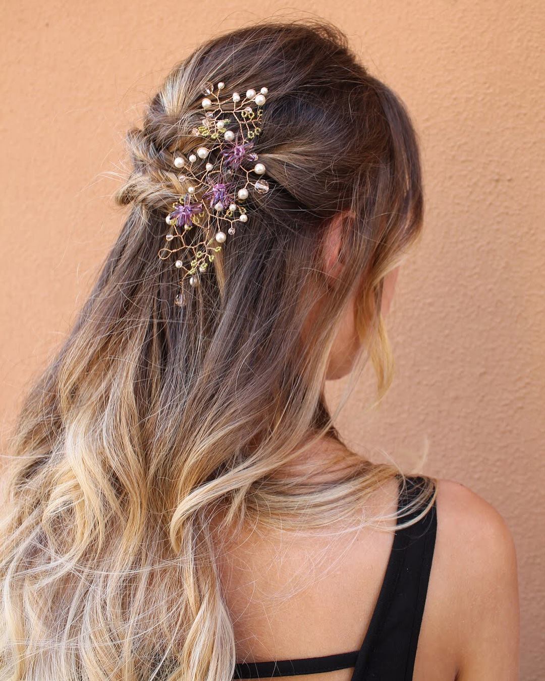 The small eyelets at the ends of the composition allow you to fix the accessory with practical hairdressing hairpins (not included), making it versatile and suitable for many hairstyles. This is perfect also for a adorable bridesmaid!