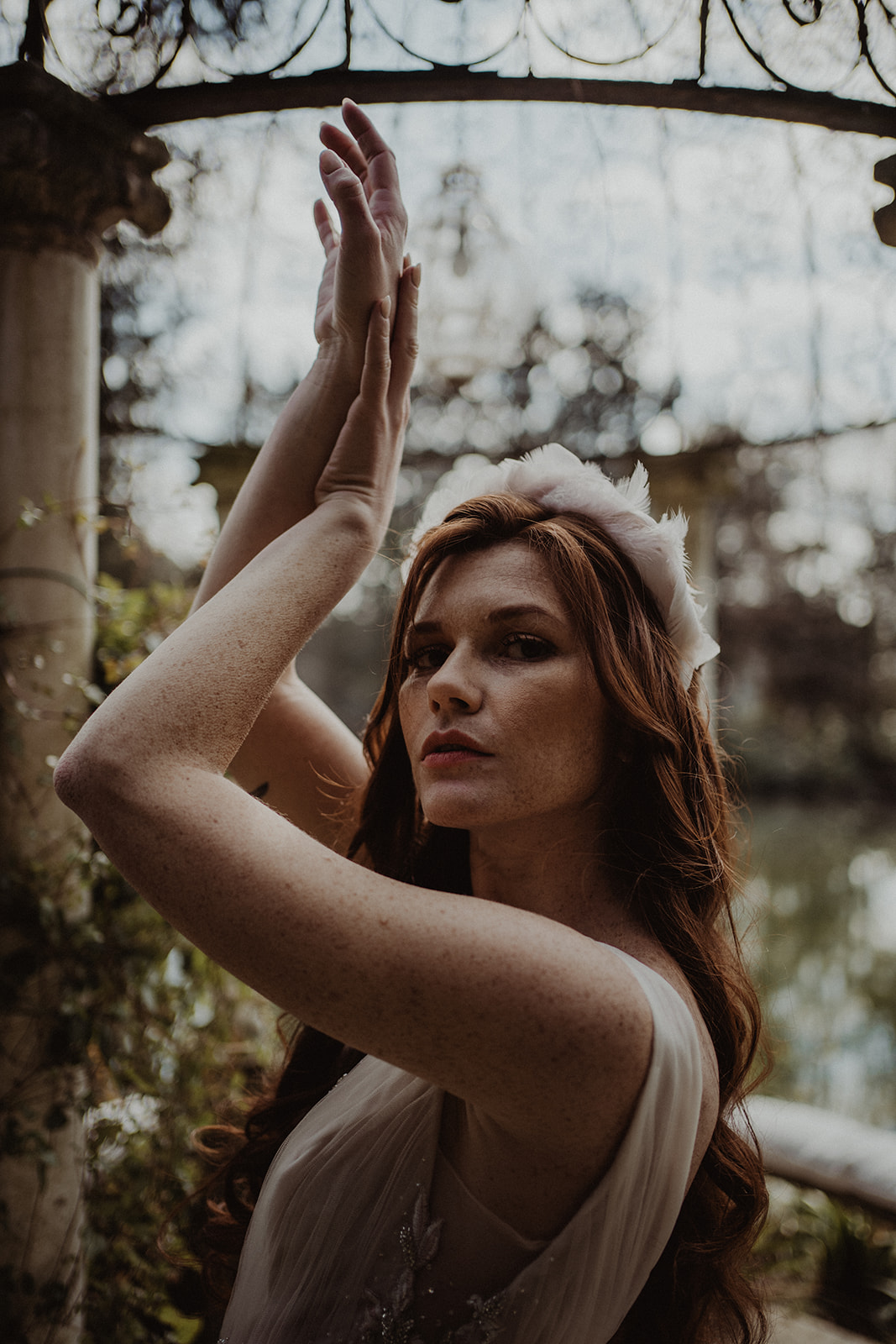 Un altro accessorio interessante è il tralcio a fascia, privo di supporto rigido e quindi particolarmente adattabile alla forma della testa o della acconciatura. Queste due fasce della Collezione Feuillage, in particolare, sono leggerissime e si possono fissare facilmente con forcine invisibili.