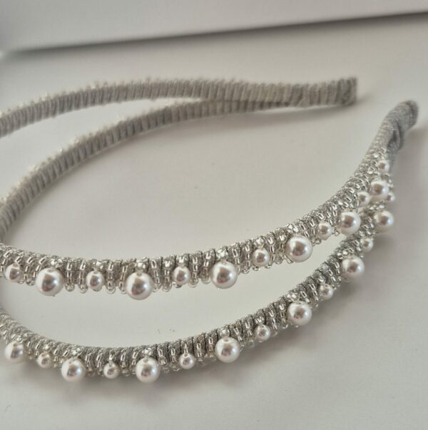 Questo cerchietto doppio ricamato color argento con perle Swarovski è un vero gioiello per capelli che non passerà inosservato. Adatto ad abiti couture dal sapore vintage e dallo stile ben definito. E’ perfetto per impreziosire qualsiasi acconciatura ed è adatto anche ai capelli corti. Puoi completare il tuo look con gli orecchini arg925 con perle oppure con gli orecchini fiore rodio con perle Swarovski della nostra collezione.