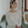 Cerchietto da sposa con perle bianco, leggermente imbottito e rivestito in raso di seta con applicazione di pizzo a rete e piccole perle Swarovski bianche ricamate a mano. Altezza decoro circa 14 mm, larghezza 25 mm. Il rivestimento interno è in morbido nastro di velluto per un comfort ottimale. Questo accessorio è interamente cucito e ricamato a mano in Italia.
