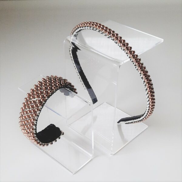 Cerchietto sottile con perle Swarovski bronzo in stile glamour