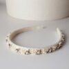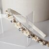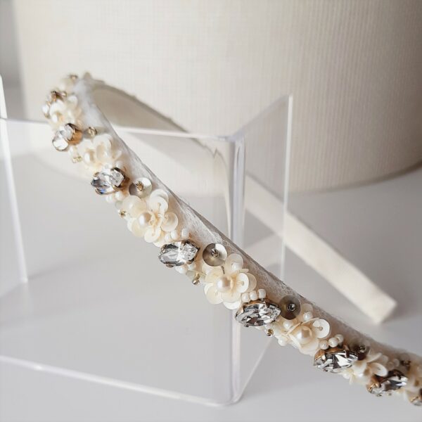 Cerchietto nuziale con perle, perline, cristalli e paillettes ricamato a mano.