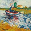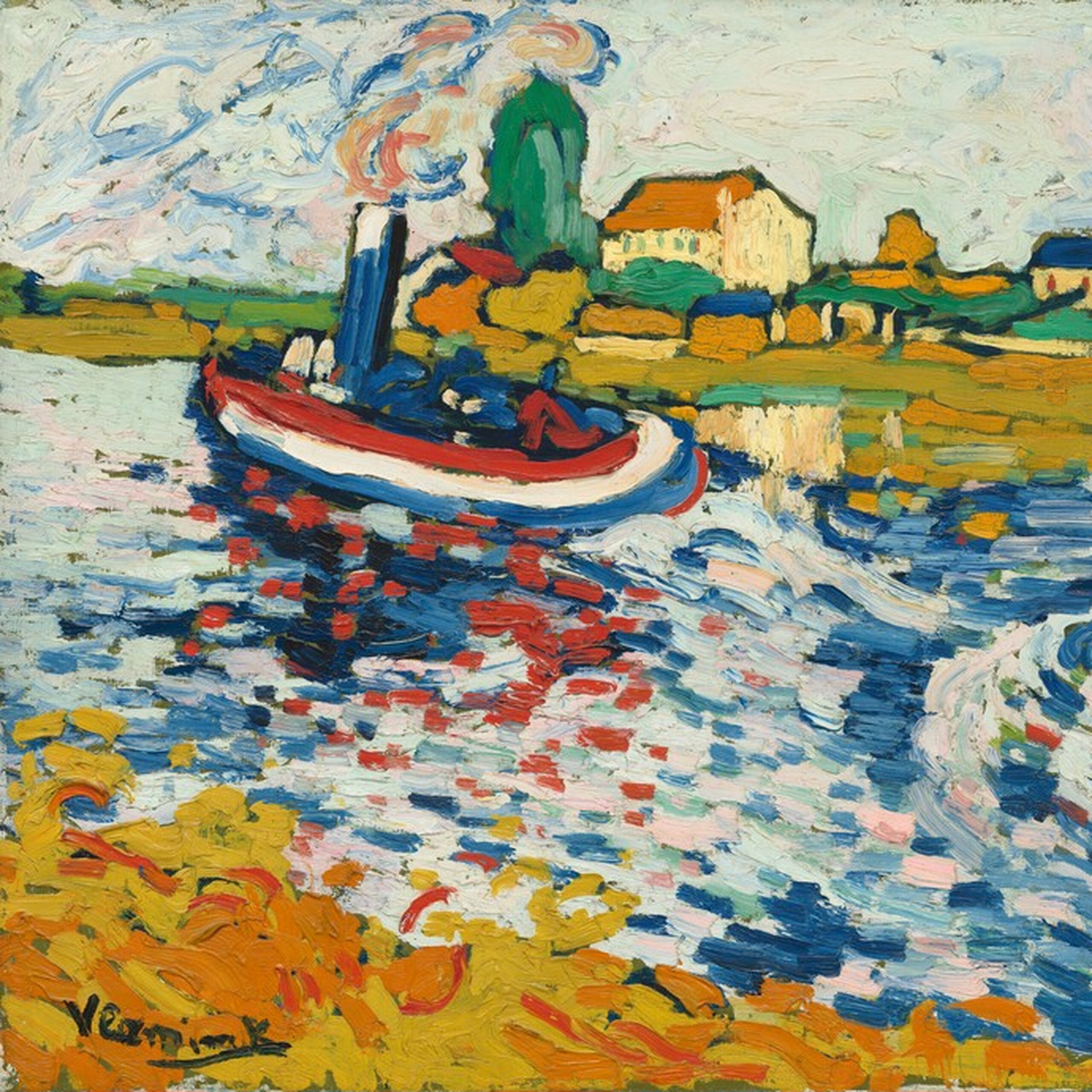 I colori caldi e accesi di questo gioiello ricordano le tinte forti dei maestri fauve, in particolare Tugboat sulla Senna, Chatou (1906 ca.) di Maurice de Vlaminck.