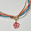 Collana collier torchon oro con catena in acciaio inox, corallo, turchese e agata