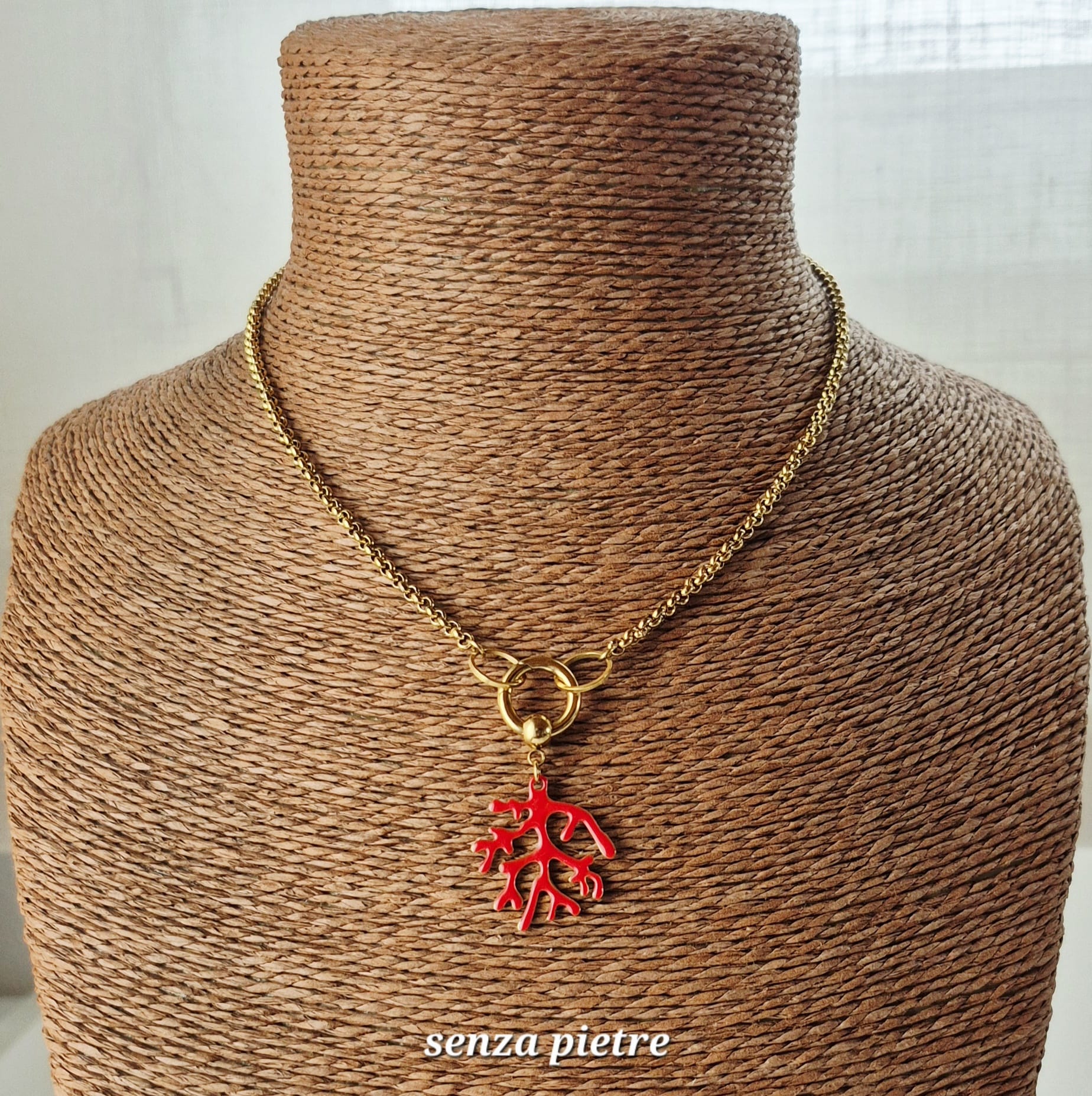 Questo collier oro con corallo e tuchese è un gioiello super colorato che richiama il mare e l’estate, da indossare su un abito leggero o sotto una blusa aperta. Catena e pendente sono staccabili, il che permette di indossare il collier in diversi modi. Scorri la gallery per vedere tutte le versioni!