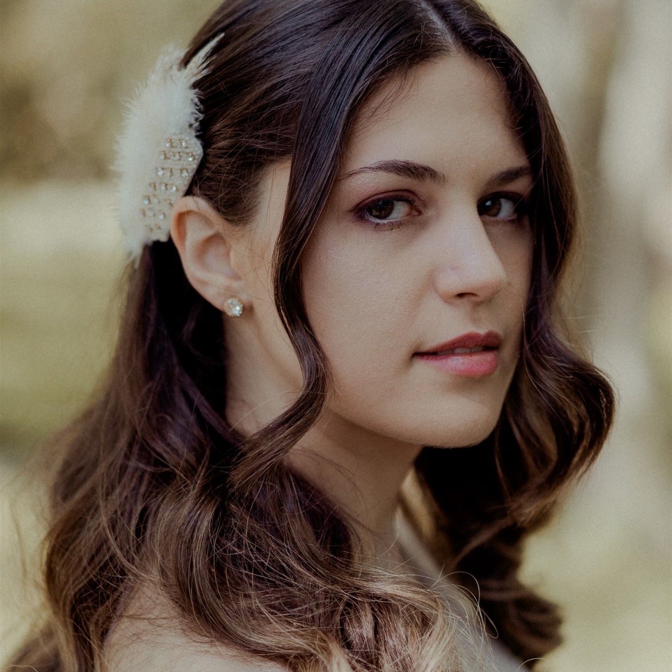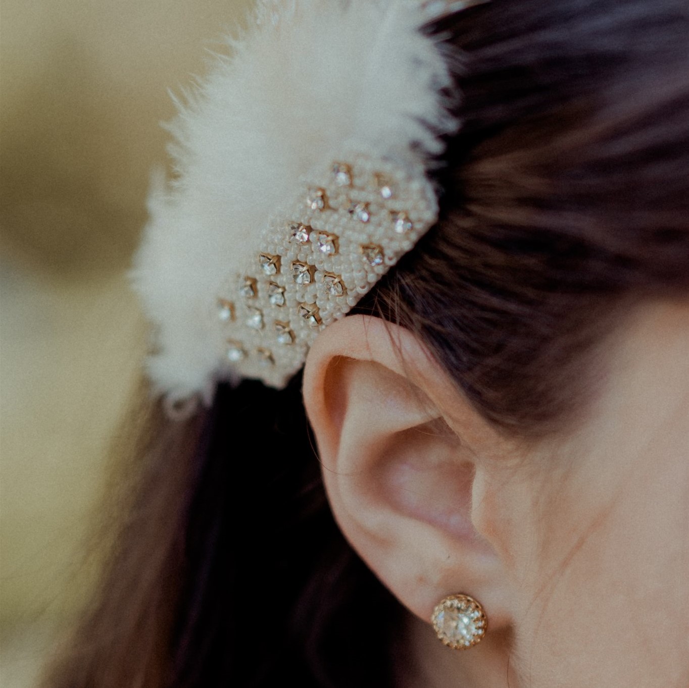 Versatile e leggero, grazie alla base a molletta questo accessorio si applica veramente a qualsiasi acconciatura. Questo fermaglio ricamato con piume oro e crema è perfetto su un abito di ispirazione boho, a sirena, oppure a completamento di un look vintage non convenzionale.