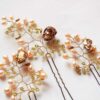 Forcina nuziale lavorata su filo in metallo bronzo dorato, decorata con perle coltivate rosa, una goccia Swarovski Golden Shadow (di 2 misure diverse) e perline in vetro verdi. Scegli la quantità da acquistare, da 1 a 3 forcine! Se acquisti una forcina, avrai quella con la goccia più grande. La seconda e la terza forcina acquistate avranno invece entrambe la goccia più piccola.
