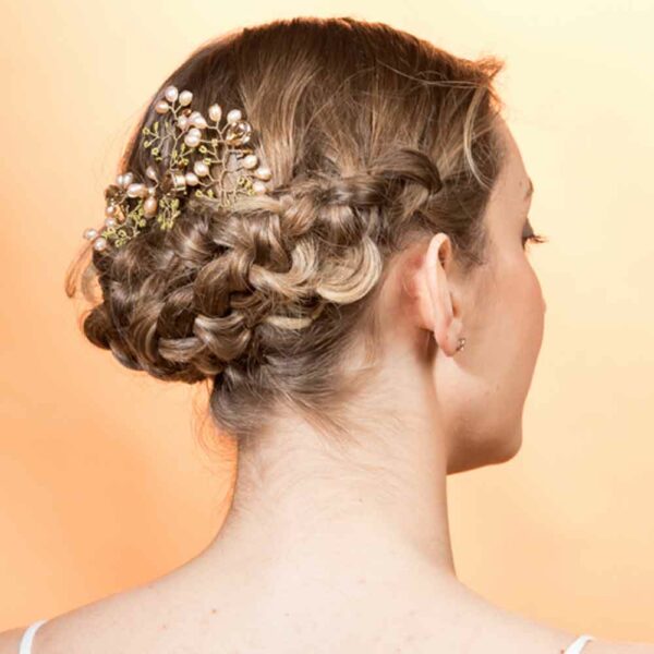 Queste forcine delicate e romantiche sono un accessorio prezioso, adatto a un abito colorato o boho chic. Molto versatili, si adattano a diverse acconciature. Questa forcina nuziale con perle rosa e cristalli oro è adatta anche a una damigella.