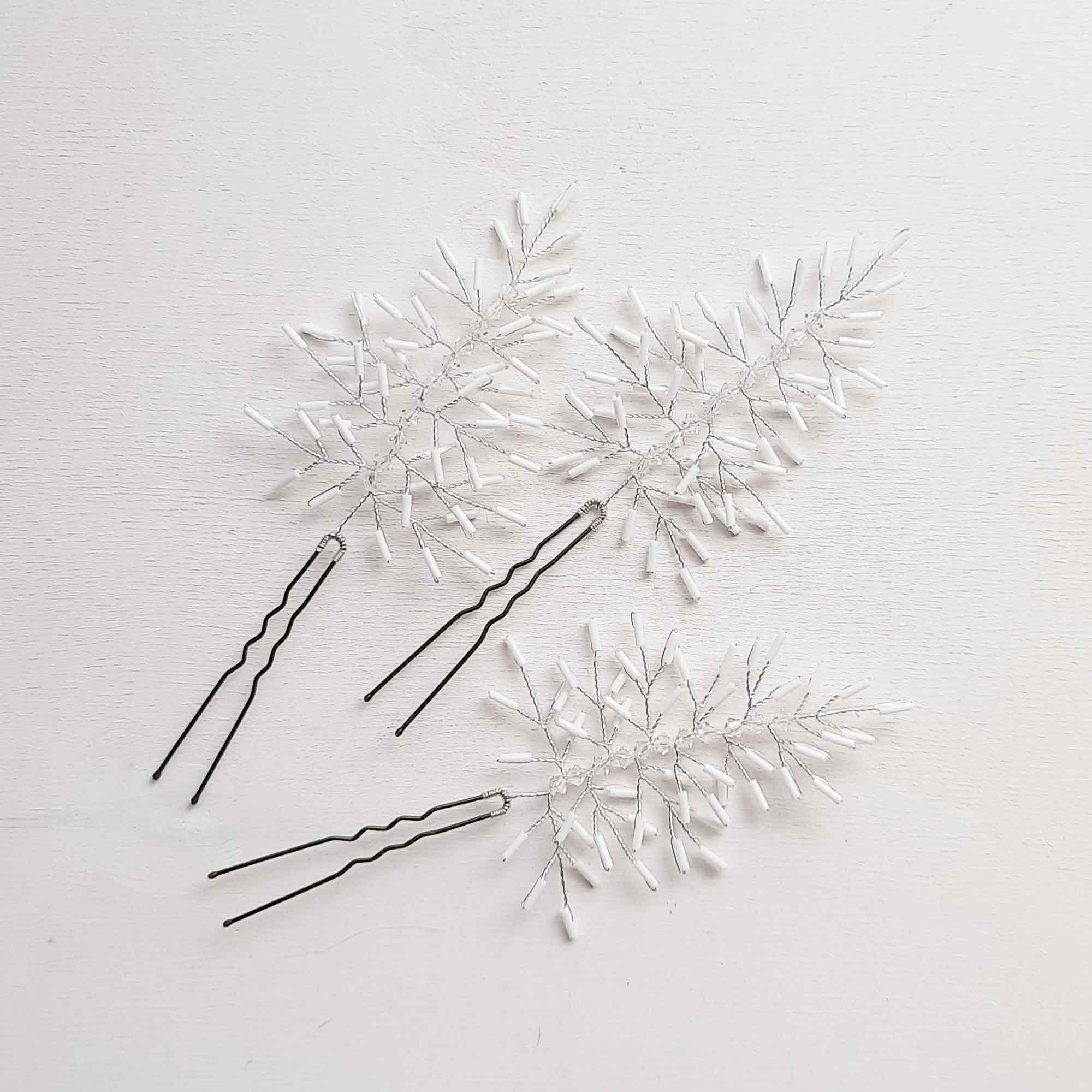 Queste forcine delicatissime e molto luminose possono adornare con grazia diverse acconciature per la sposa e o per una damigella. Il colore bianco e il tema naturale rendono questa forcina a forma di felce bianca particolarmente adatta ad abiti da sposa boho chic, ricchi di romantico tulle e pizzi. Scegli la quantità desiderata, da 1 a 3 forcine!