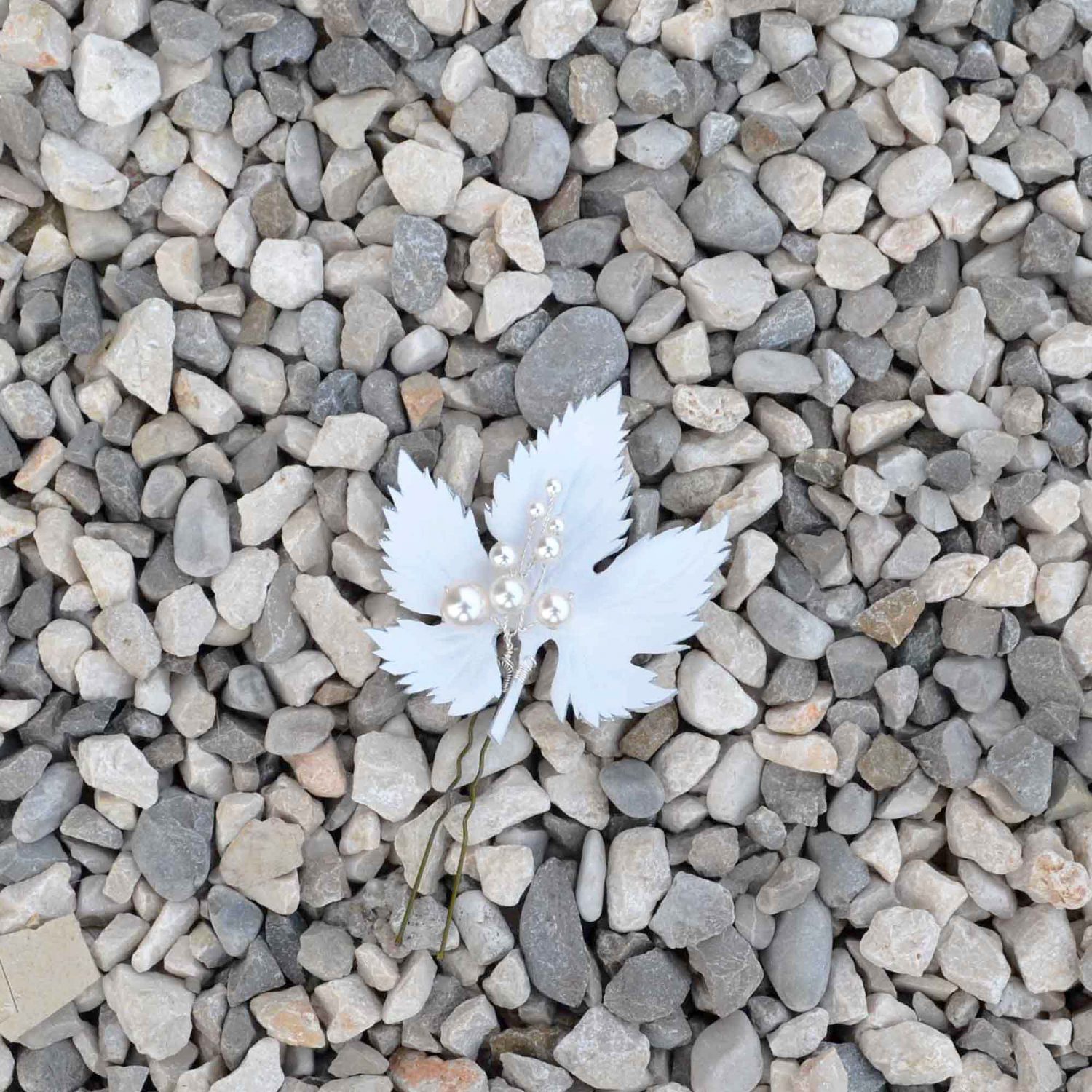 Queste forcine preziose possono adornare con grazia diverse acconciature raccolte da sposa. La combinazione di bianco/argento e il tema botanico rendono questa piccola foglia di vite bianca un accessorio adatto ad abiti da sposa romantici e dal gusto vintage. La foglia piccola è abbinabile a quella più grande, per un effetto scenografico sorprendente.