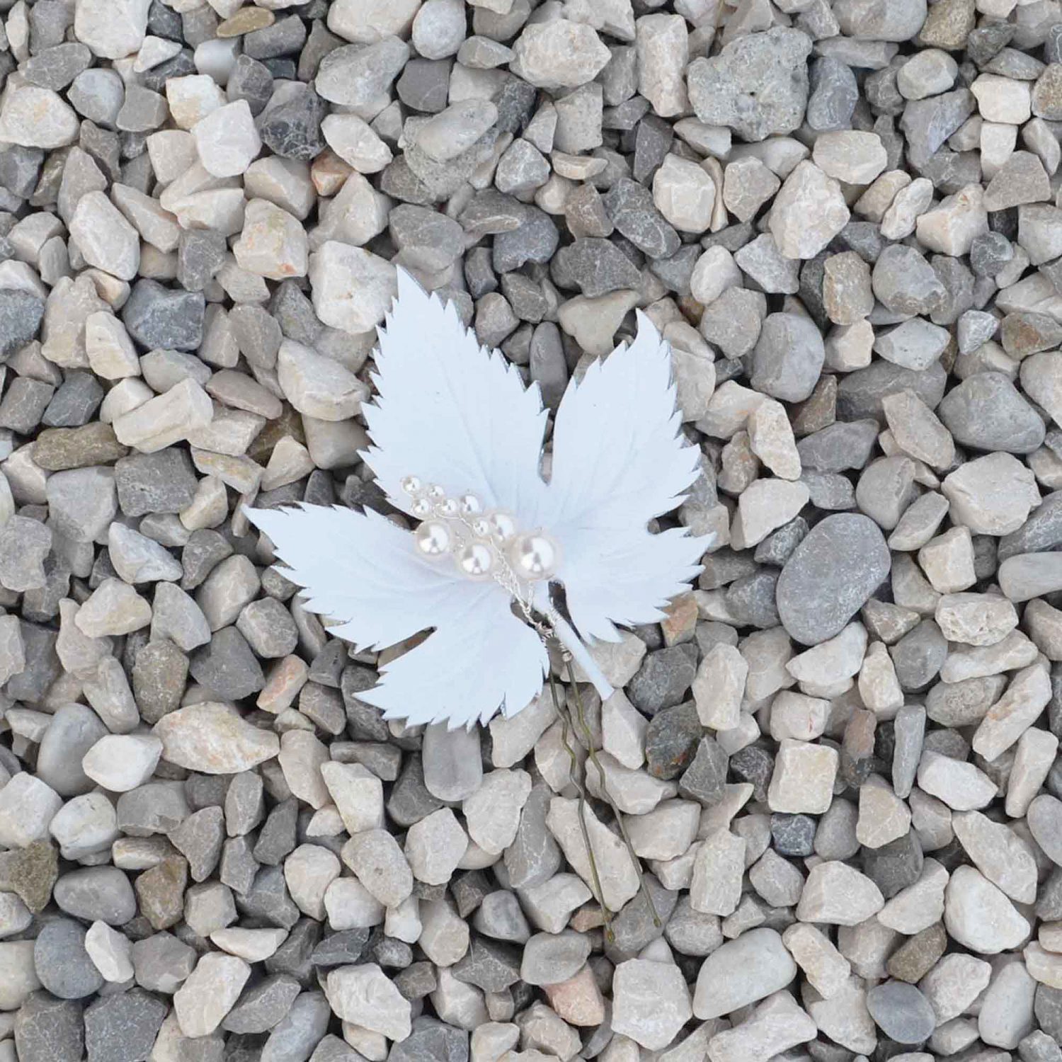 Queste forcine a forma di foglia di vite grande bianca, originali e preziose, possono adornare con grazia diverse acconciature raccolte da sposa. La combinazione di bianco/argento e il tema bucolico lo rendono un accessorio particolarmente adatto ad abiti da sposa romantici e dal gusto vintage. La foglia grande è abbinabile a quella più piccola, per un effetto scenografico sorprendente.
