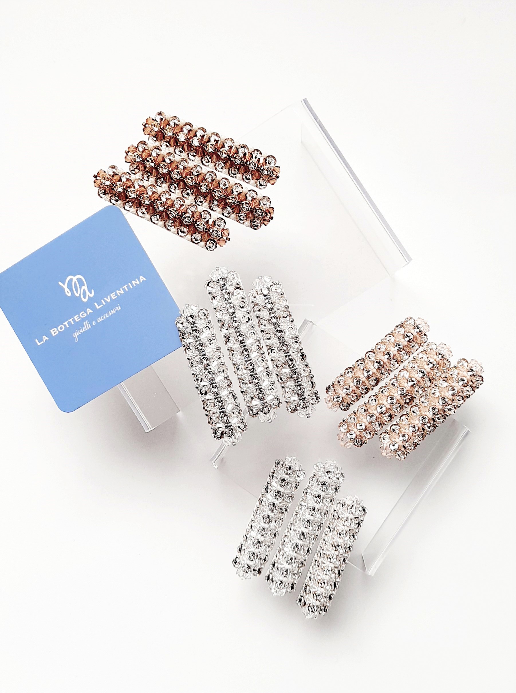 - Crystal & Bronze: abbinamento di cristalli trasparenti e bruni e perline bronzo.