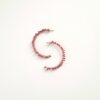 Orecchini a mezzo cerchio in acciaio inox placcato oro rosa con micro perle Swarovski da 2 mm. Questi orecchini sono disponibili con perle nel colore originale Swarovski Mulberry Pink Pearl (rosa more di gelso).