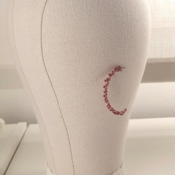 L’orecchino è lungo circa 5 cm e ha una struttura semirigida. Gli orecchini si intendono completi di farfalline in acciaio inox.