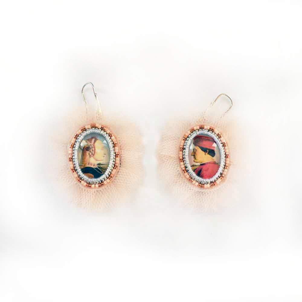 La collezione Rinascimento de La Bottega Liventina si ispira ai ritratti femminili di epoca rinascimentale ad opera dei grandi pittori italiani dell’epoca, come Piero della Francesca, che ha realizzato il famoso doppio ritratto dei Duchi di Urbino (1465-72).