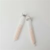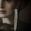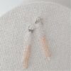 Orecchini a monachella in argento 925 Made in Italy decorati con pendenti lunghi con cristalli. I cristalli Swarovski sono nei colori Crystal e Silk (rosa cipria) e le rocailles giapponesi sono placcate argento. Ogni pendente è lungo 10,5 cm (monachella compresa). Diametro cristalli Swarovski 4 mm.