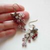 Delicati orecchini dallo stile bucolico e decisamente rétro, adatti ad un matrimonio a tema autunnale o invernale, oppure ad un abito colorato dal sapore vintage. Perfetti anche su un abito rosa o bianco romantico con motivi floreali, oppure in stile boho-chic. E’ possibile abbinarli agli accessori per capelli della stessa collezione, come queste forcine per capelli decorate.