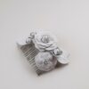 Originale e dal design essenziale, questo elegantissimo pettinino da sposa con camelie bianche è adatto ad una acconciatura raccolta e ad un look sposa decisamente sofisticato. Le sue linee essenziali lo rendono adatto a ogni stile di abito da sposa, dall’abito haute couture al boho chic più romantico.