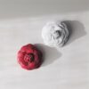 Piccola spilla a forma di fiore di camelia in vera pelle, disponibile nei colori bianco o rosso. Diametro circa 5 cm; spessore circa 1 cm. Realizzata interamente a mano con tecniche di modisteria. Disponibile in altri colori solo su richiesta.