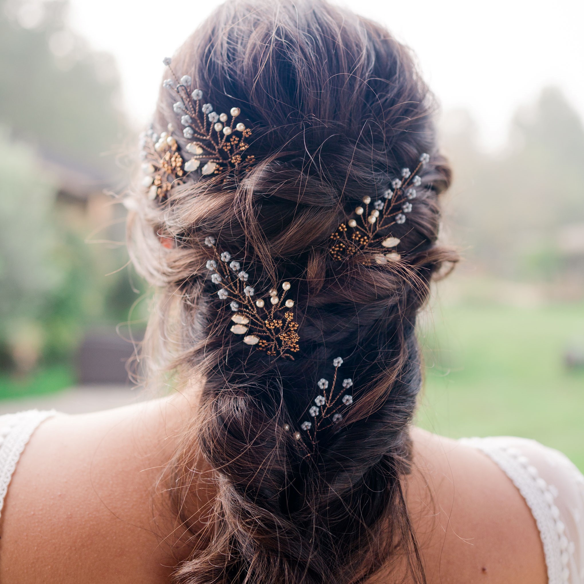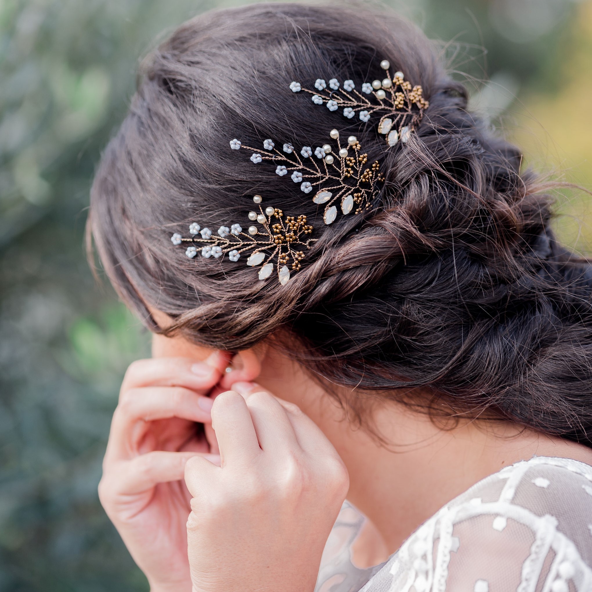 Queste forcine-gioiello colorate ma molto eleganti completano con un pizzico di originalità un look sposa boho chic. Questa spilla per capelli con fiori in vetro blu è facile da utilizzare e si adatta a diverse tipologie di acconciatura. Scegli la quantità da acquistare secondo le tue esigenze, da 1 a 5 forcine.