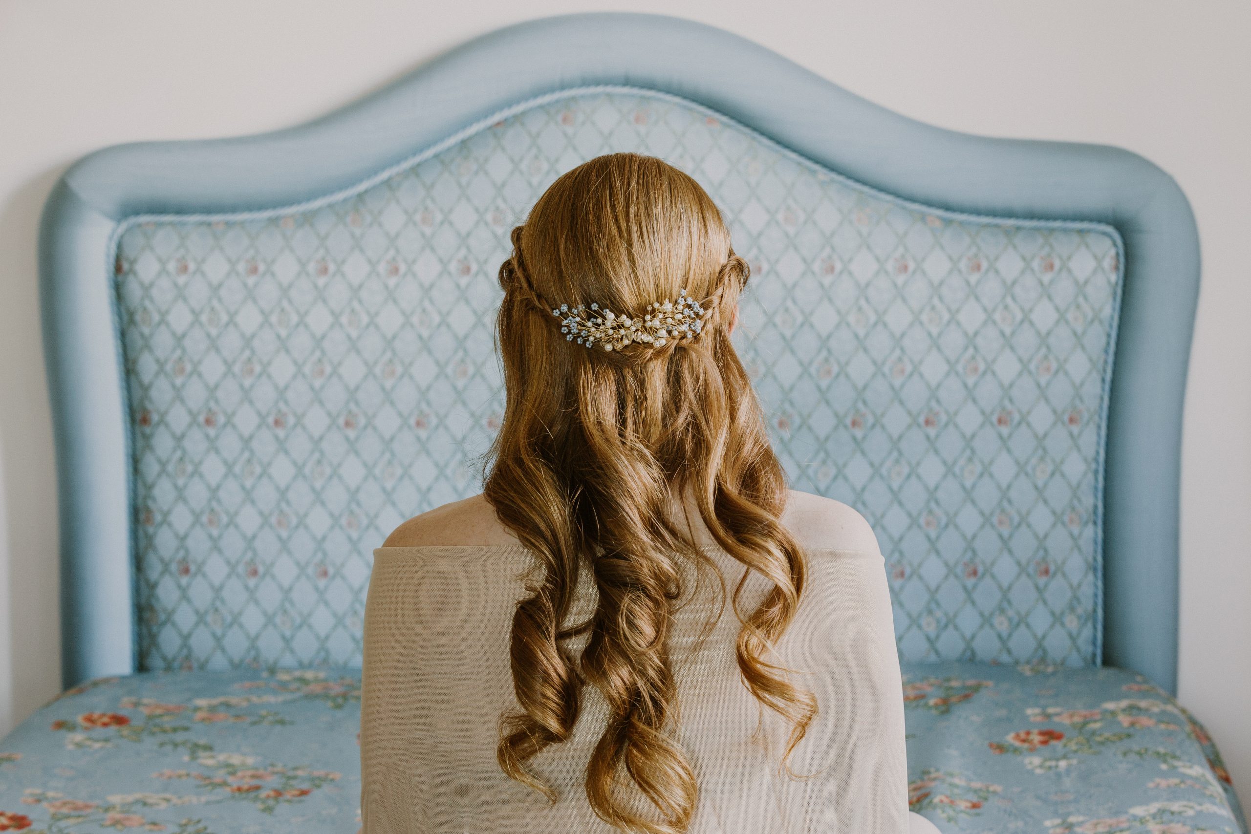 E cosa ne dici di questo splendido tralcio corto nei toni del blu e dell’oro? Se ami i colori caldi e vuoi aggiungere un dettaglio originale al tuo look sposa, questo è l’accessorio per capelli che fa per te!