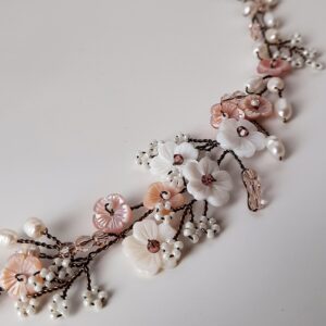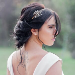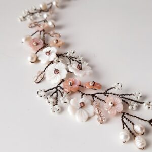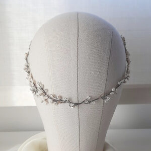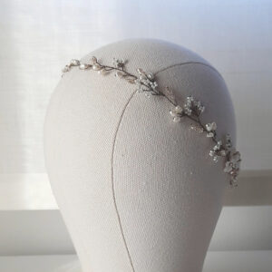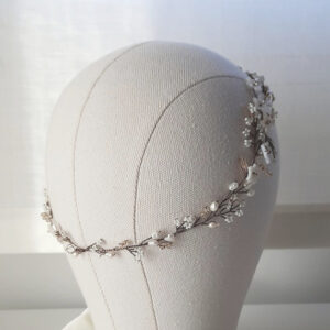 Accessorio per capelli tralcio lungo da sposa con perle bianche e quarzo ialino