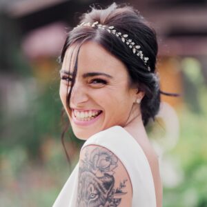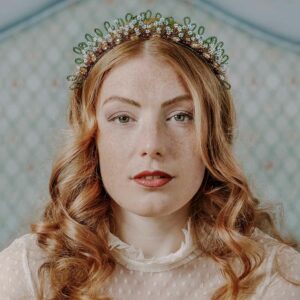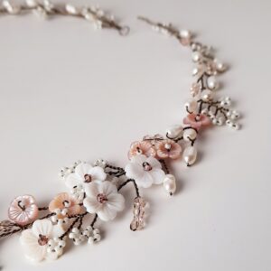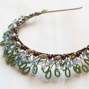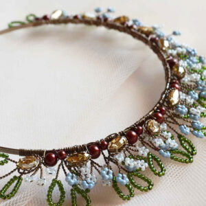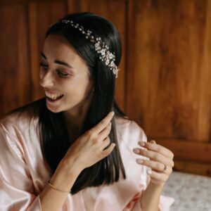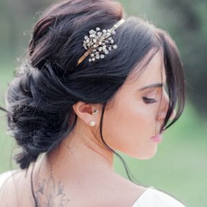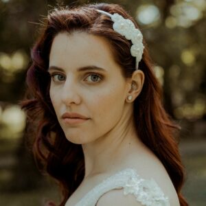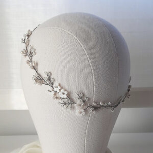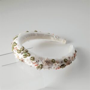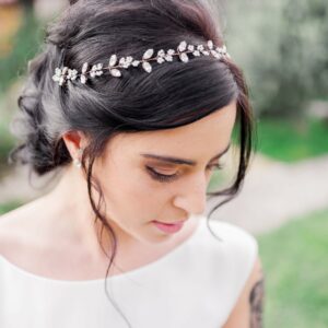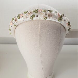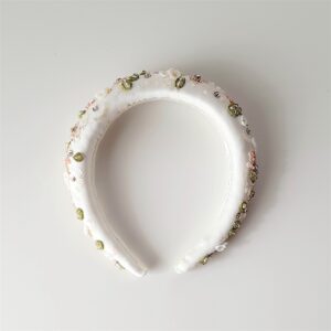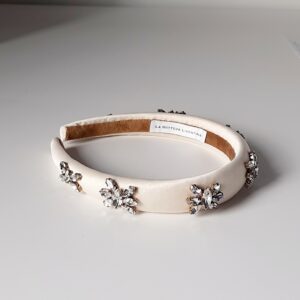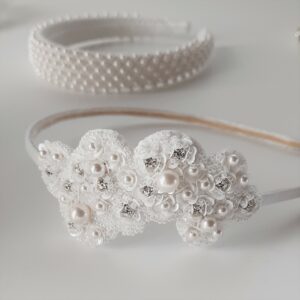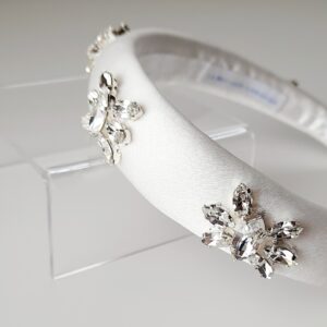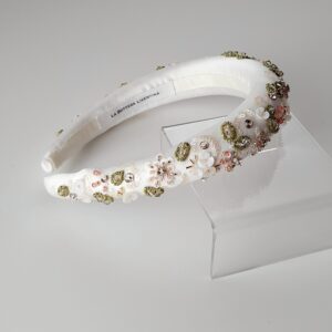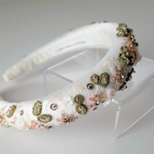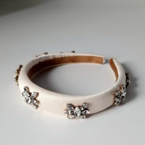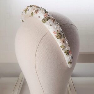 Cerchietto da sposa bianco o crema ricamato con cristalli