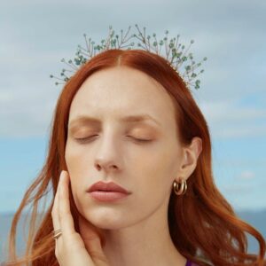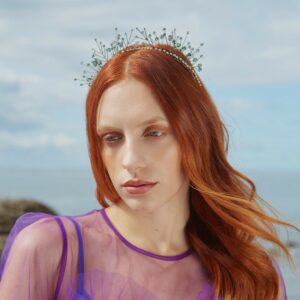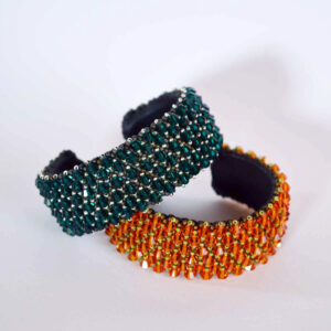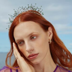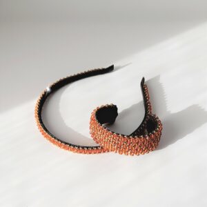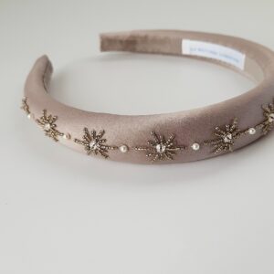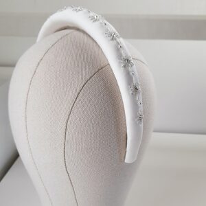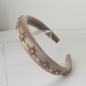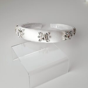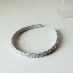 Cerchietto bianco ricamato con stelle di cristalli e perline